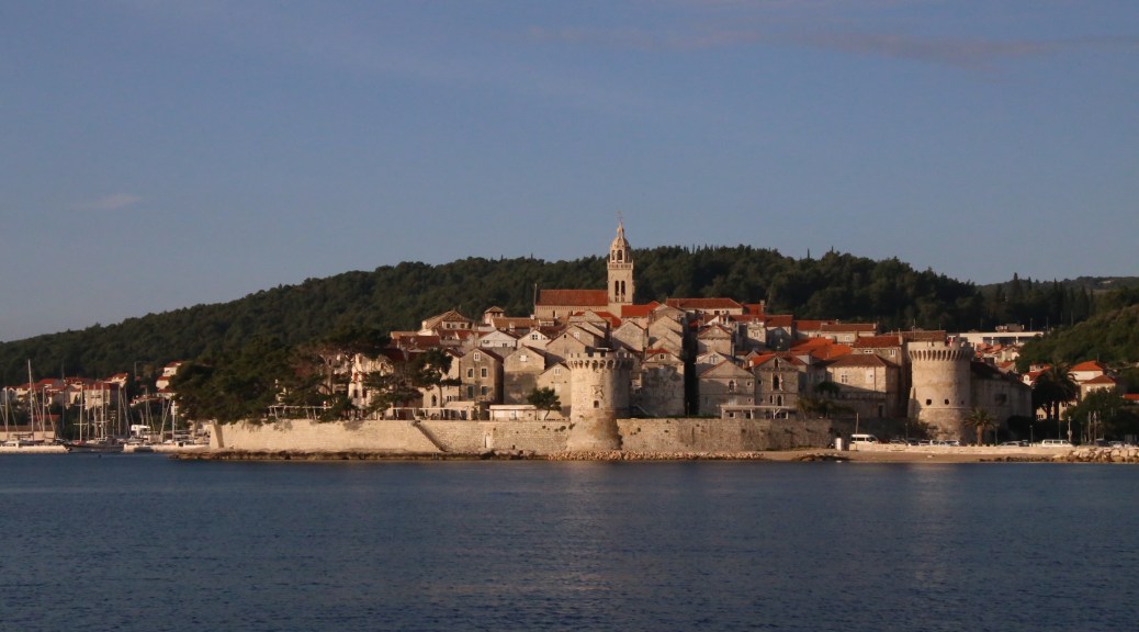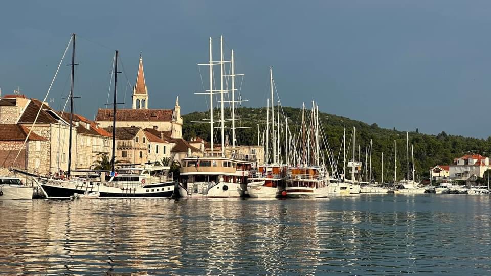 As we go past Korcula Town, it looks stunning and on the far side of the town is a large marina with a number of 50 metre motor boats, similar to Casanova. Clearly they have to get out early since about half a dozen of these leave at the same time as we go past. We need to be careful not to get in anyone’s way but we seem to be in the middle of a convoy of ships. This is fine for a while but the problem is that there is a little blue fishing boat in the way. As one of the big boats goes to avoid him, the electronics on our boat light up – he will hit us in two minutes! We give them a little room knowing they will return to their previous course when they get past him but better safe than sorry. The water is an absolute mill pond, so no sails for us today but we are enjoying heading in the same general direction with our escorts.