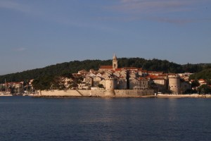 As we get out of the bay, it is an easterly wind of 12-14knots. We will motor sail with most of the main and the stay sail so we don’t heal over too much. Mariadz, and Maria, don’t like that. We want to head east and it would take a very long time just sailing and tacking there. Maybe if we had more time. We start heading north east towards the island of korcula that we have visited already, actually our heading is pretty much straight at korcula town on the far side of the island. Rather than two tacks maria would like to break it up a bit more into four tacks which also gives us some options if the wind changes direction, I guess. As we finish our final south eastern tack we have lost a bit of time but the wind has shifted south a little which allows us to aim directly for our destination as the sun comes out to dry our stuff and make Maria happy.
